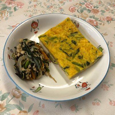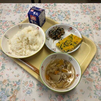 ごはん 千草焼き 納豆和え のっぺい汁 牛乳