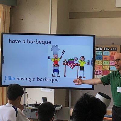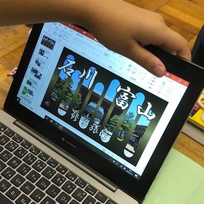デジタルフラッシュカードで単語の発音を反復練習しています