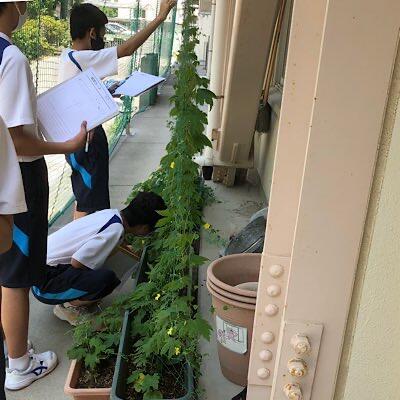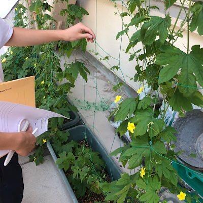 ゴーヤの摘芯を行い、成長の様子を見ています
