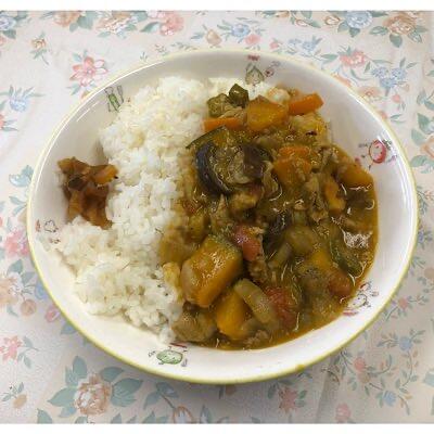 ガーリックライス ラタトゥィユ ごぼうサラダ バナナ 牛乳