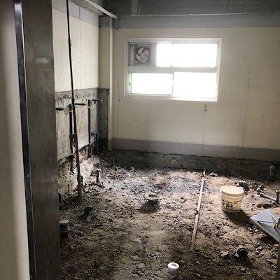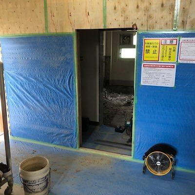 夏休みに入り、校舎西側トイレのリニューアル工事が始まっています