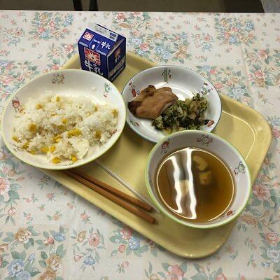 とうもろこしごはん 鶏の照り焼き すまし汁 和風ツナサラダ 牛乳