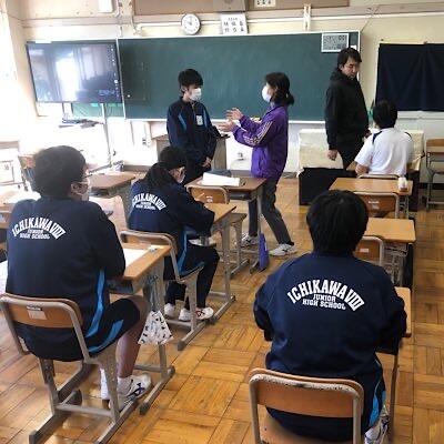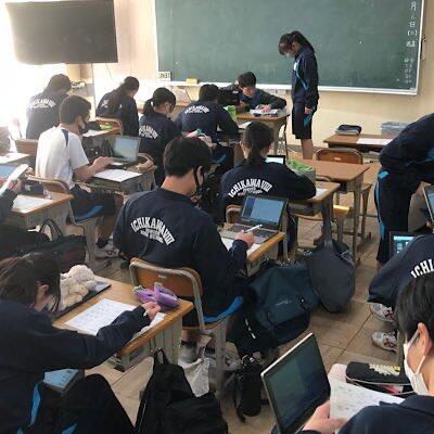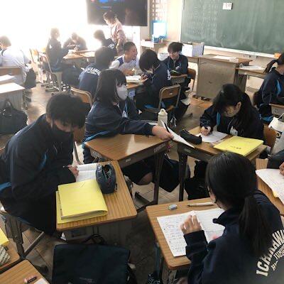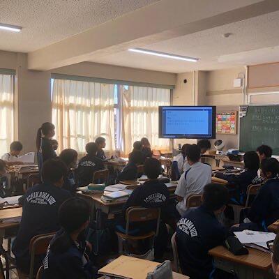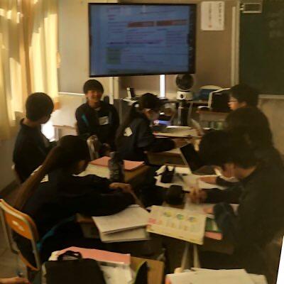 4人グループで、海外の姉妹校(設定上)に英語で提案したい内容をまとめています