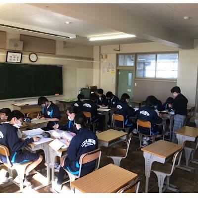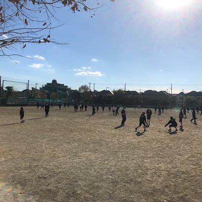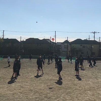 サッカー部は、校庭が水たまりのため屋内トレーニング中です
