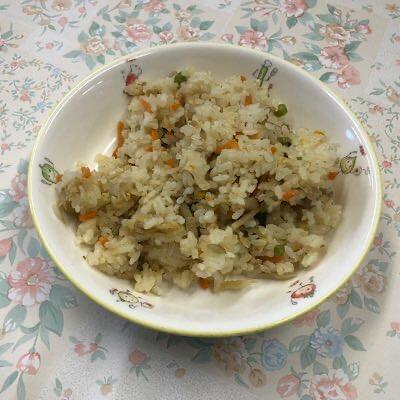 ふんわり炊いたお米に合わせ、細かく刻んだ、大根、にんじん、お肉、
