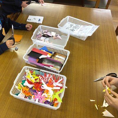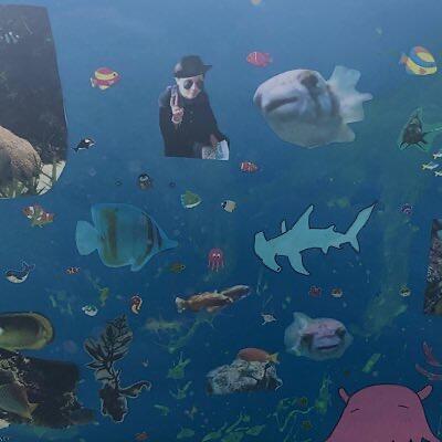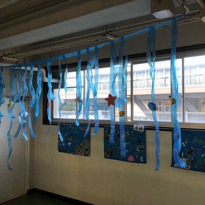 葛西臨海公園の活動をもとに海の中のイメージの掲示作品を作りました