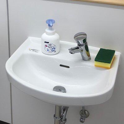 校舎西側トイレの全面工事を終え、清掃用具などを整えて使用開始しています