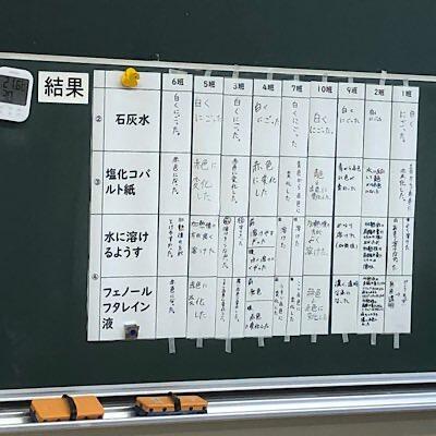 実験結果をグループごとにまとめて掲示し、比較・考察します