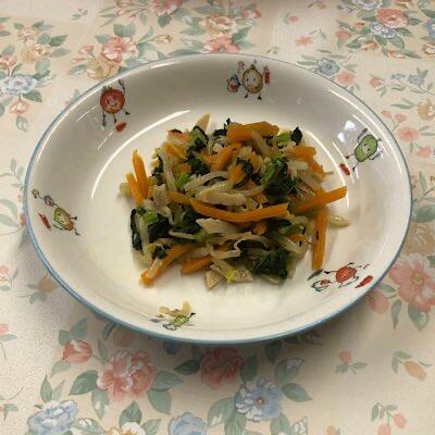 小松菜シラスふりか 鶏香味焼き ごはん 味噌汁 ポテトサラダ 牛乳