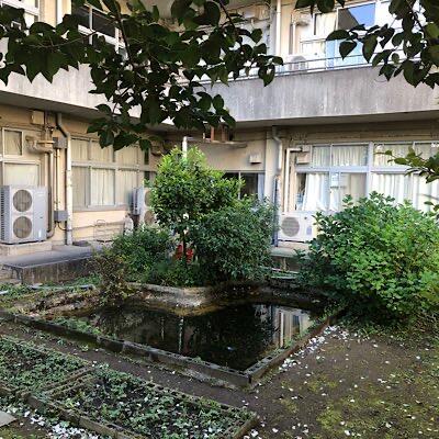 中庭ハート池のオタマジャクシ 成長が早い個体は、前足が生えました