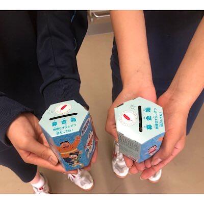 登校時、中央委員会メンバーが、緑の羽根募金運動を行なっています