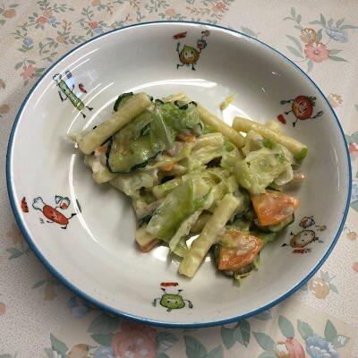 すき焼き煮 マカロニサラダ ごはん 牛乳