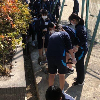 三学年が、お世話になった学校に感謝の思いでボランティア活動をしています
