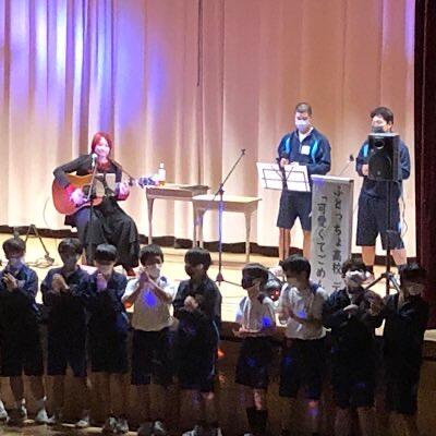 PTA家庭教育学級のイベントで、昨年に続いてシンガーソングライターの右藤綾子さん、田中さとこさんをお招きして開催しています 今回は、二学年が対象です