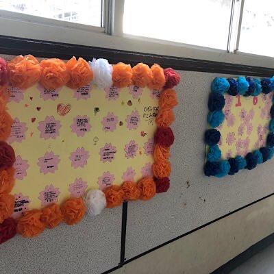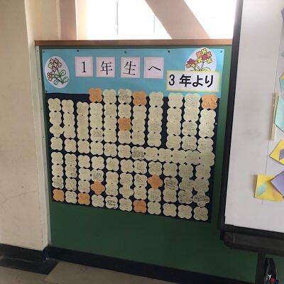 1,2学年ろうかに卒業生からのメッセージが掲示されました