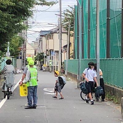 登校時間帯 地域ボランティアの方々が、