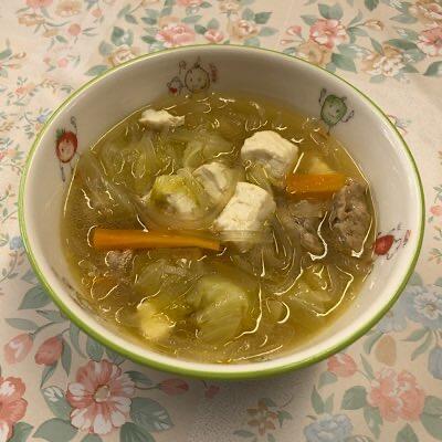 熱々スープに溶けた肉団子の油の旨味が、マロニーのツルツル食感と合わさり味覚を楽しく刺激します