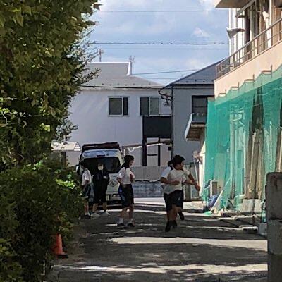 八中前のあいさつロードは、中学生は、八中側を小学生は、鶴指小側を歩きます