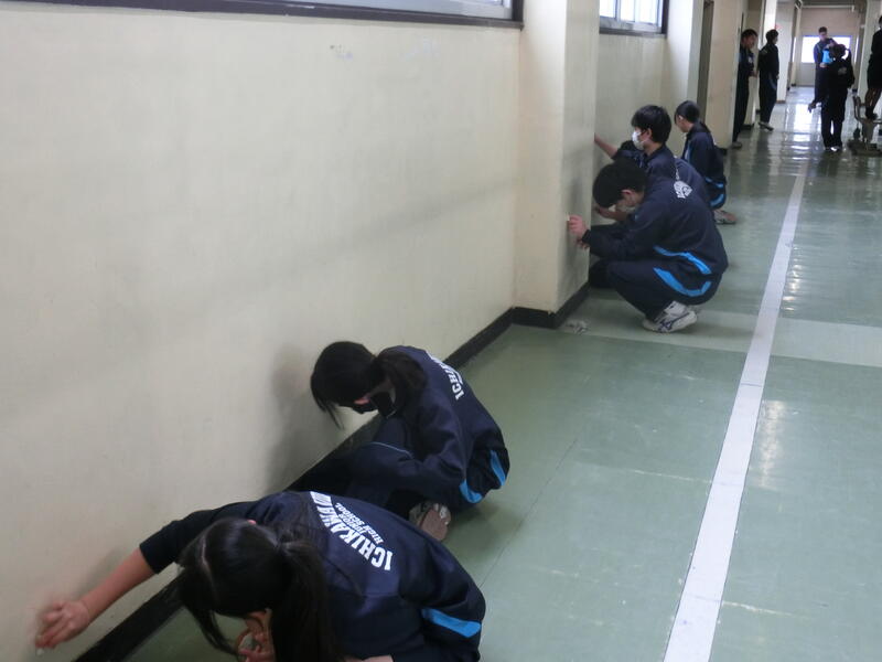 震度5弱以上の地震が発生して場合、生徒は引き渡しとなります。