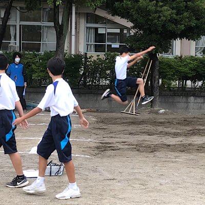 1校時 一学年 体育 走り幅跳び、短距離走を学習しています