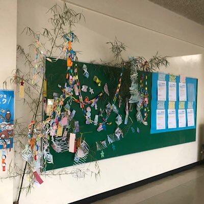 図書室で、七夕飾りを作っています