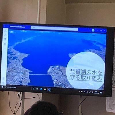 グループで準備したパワーポイント資料を使ってプレゼンしています