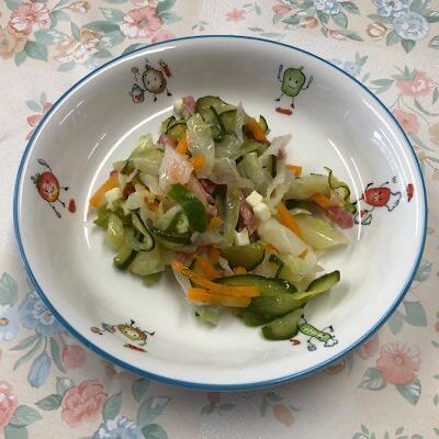 ツナ、キャベツ、もやしにショウガのアクセントの和え物です