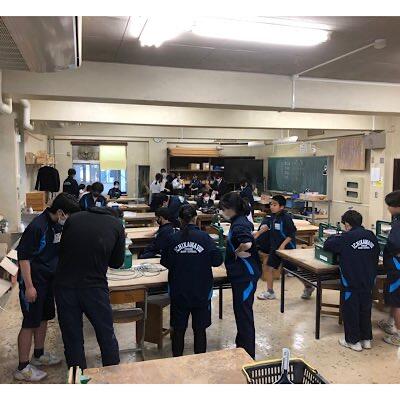 一学年が木材加工の居残り作業をしています