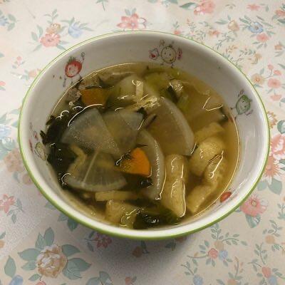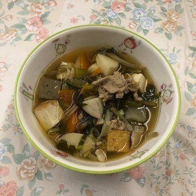 野菜がたっぷり入ったおみそ汁(大根、にんじん、ごぼう、じゃがいも、ねぎ、小松菜)