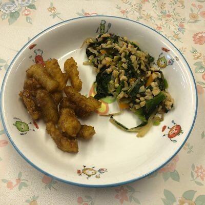 いかのかりん揚げ すまし汁 納豆和え ごはん 牛乳