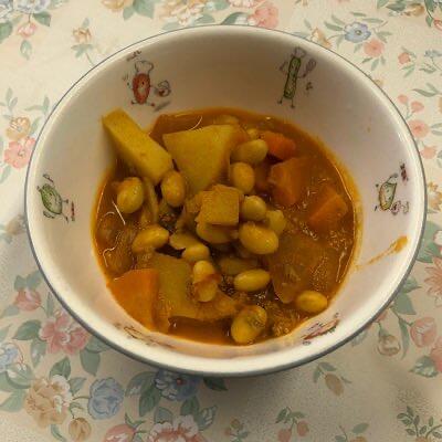 シャキシャキ野菜と、コリコリほんのり甘いお豆のコラボは、飽きがこないおいしさ