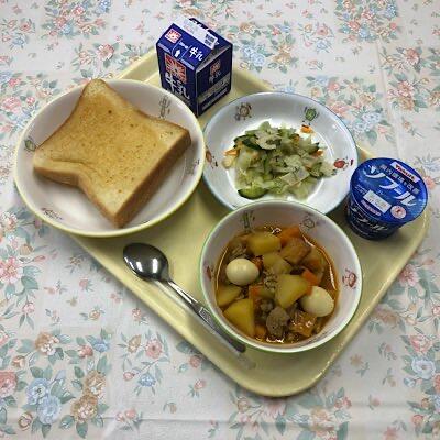 ハニートースト インド煮 いかくんサラダ ヨーグルト 牛乳