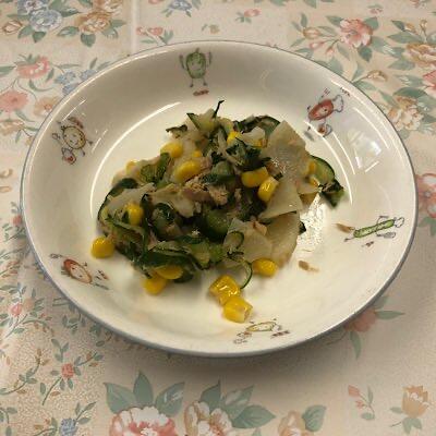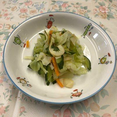 いかの燻製の香ばしさとレモンの爽やかな酸味が野菜にしみたサラダです