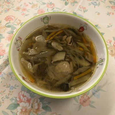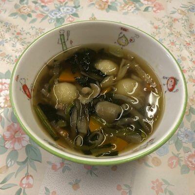 昆布とかつお節の出汁にごぼうとシイタケの風味が加わり、豊かな味わいの汁物です