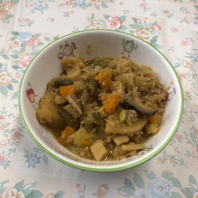 具材それぞれの特徴を生かした煮物は、野菜ジュースも加えて煮込んだ深い味わいです