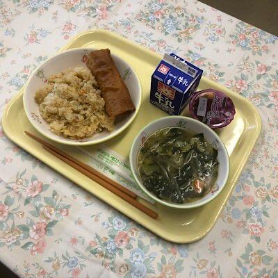今日の給食 投稿日時 : 2022/11/11 oka キムチごはん 変わり春巻き 中華スープ グレープゼリー 牛乳 健康寿命日本一を目指す街いちかわの給食『いただきます』『ごちそうさま』に感謝を込め、栄養バランスを考えて、おいしく食べましょう