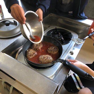 豚と牛の合い挽き肉、タマネギみじん切り炒め、牛乳に浸したパン粉、調味料の順に加え