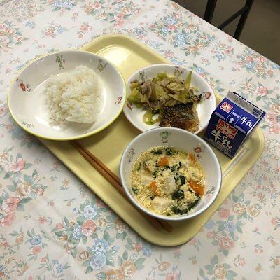 今日の給食 投稿日時 : 2023/02/08 oka サバのゴマだれ焼き 塩野菜炒め かき玉汁 ごはん 牛乳 脂がのったサバの切り身、皮パリ、身がふっくらに焼き上がり、甘辛い味付けです 健康寿命日本一を目指す街いちかわの給食『いただきます』『ごちそうさま』に感謝を込め、栄養バランスを考えて、おいしく食べましょう