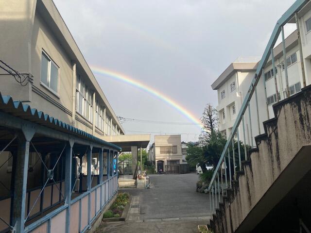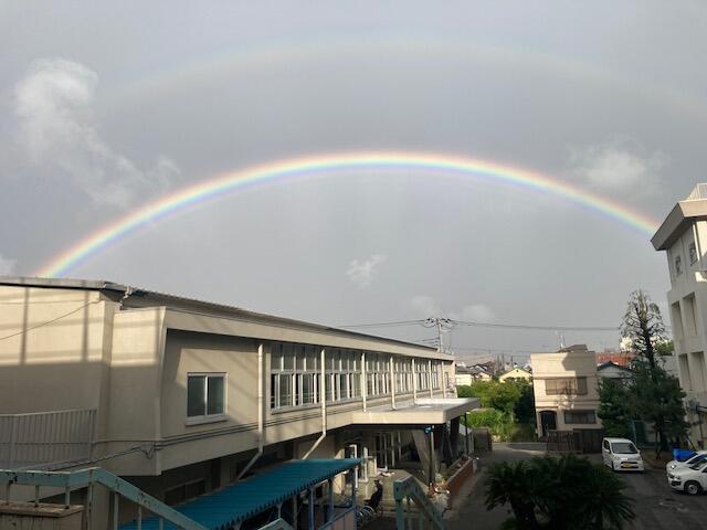 当日はあいにくの天気で蒸し暑く、大雨の時間帯もありましたが、夕方には4月の時よりも大きな虹が現れました。