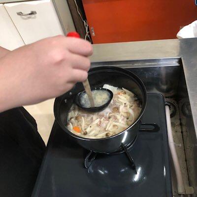 サケの塩焼き さつま汁 辛子和え 麦ご飯 お米のムース 牛乳