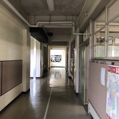 二学年ろうかに、校外学習の成果資料を掲示しています