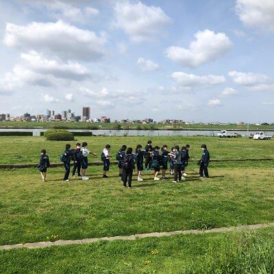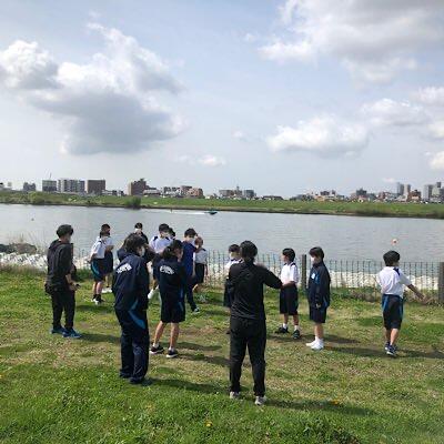 1,2校時 のぞみ学級は、江戸川河川敷に来ています
