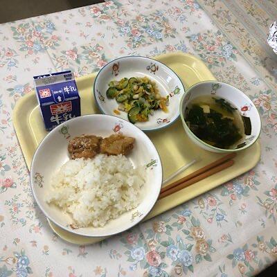 チキンピラフ 肉団子スープ たこきゅうり バナナ 牛乳