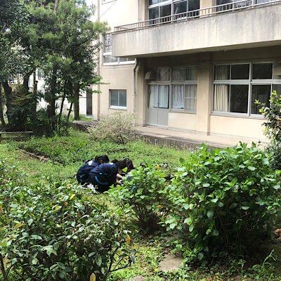 昼休み 3学年有志が、ハーブガーデンを作るプランをカウンセラーさん、用務員さんと相談しています