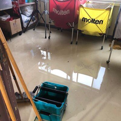 昨夜の大雨で、体育館の雨漏り被害がありました
