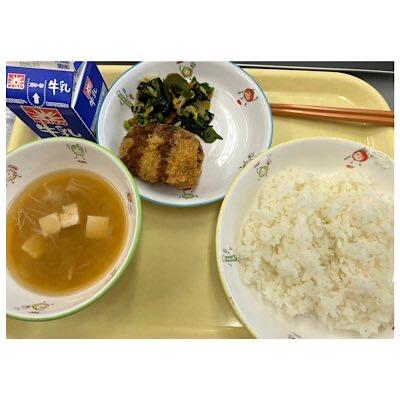 きゃべつメンチ ごはん みそ汁 ごま酢和え 牛乳
