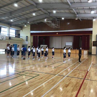 5校時 のぞみ学級 体育 整列や方向転換の仕方を練習しています