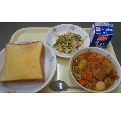 ハニートースト インド煮 いかくんサラダ 牛乳