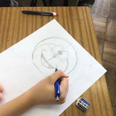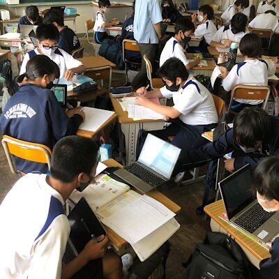 理想のロボットのイメージを英語で発表するためのグループ活動をしています