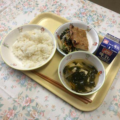 松風焼 すまし汁 ごま酢和え ごはん 牛乳